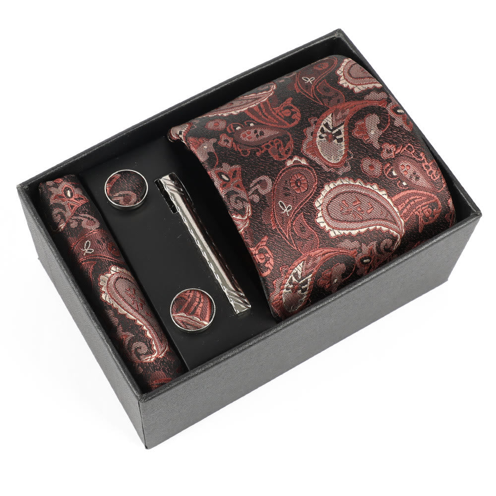 - Beinhaltet: Krawatte + Einstecktuch + Manschettenknöpfe + Krawattenklammer