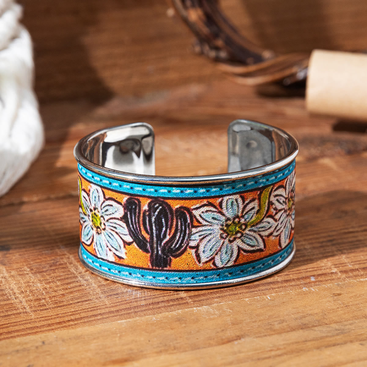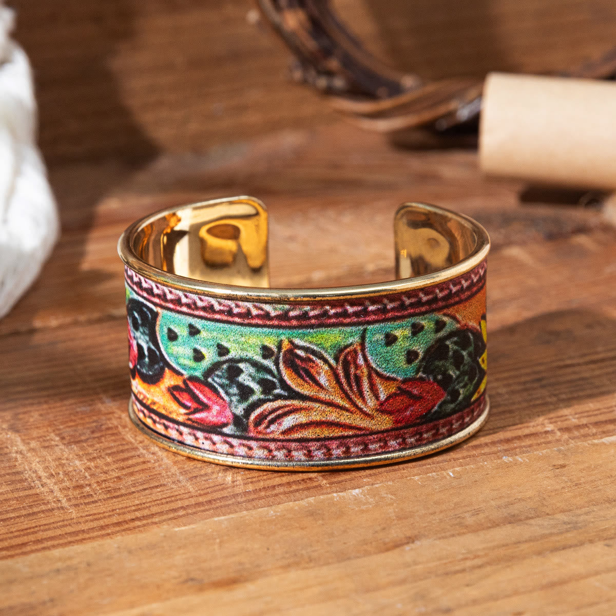 - Ob einzeln oder gestapelt getragen, es ist ein fröhliches Accessoire, das die Schönheit der Natur und Retro-Inspiration feiert.