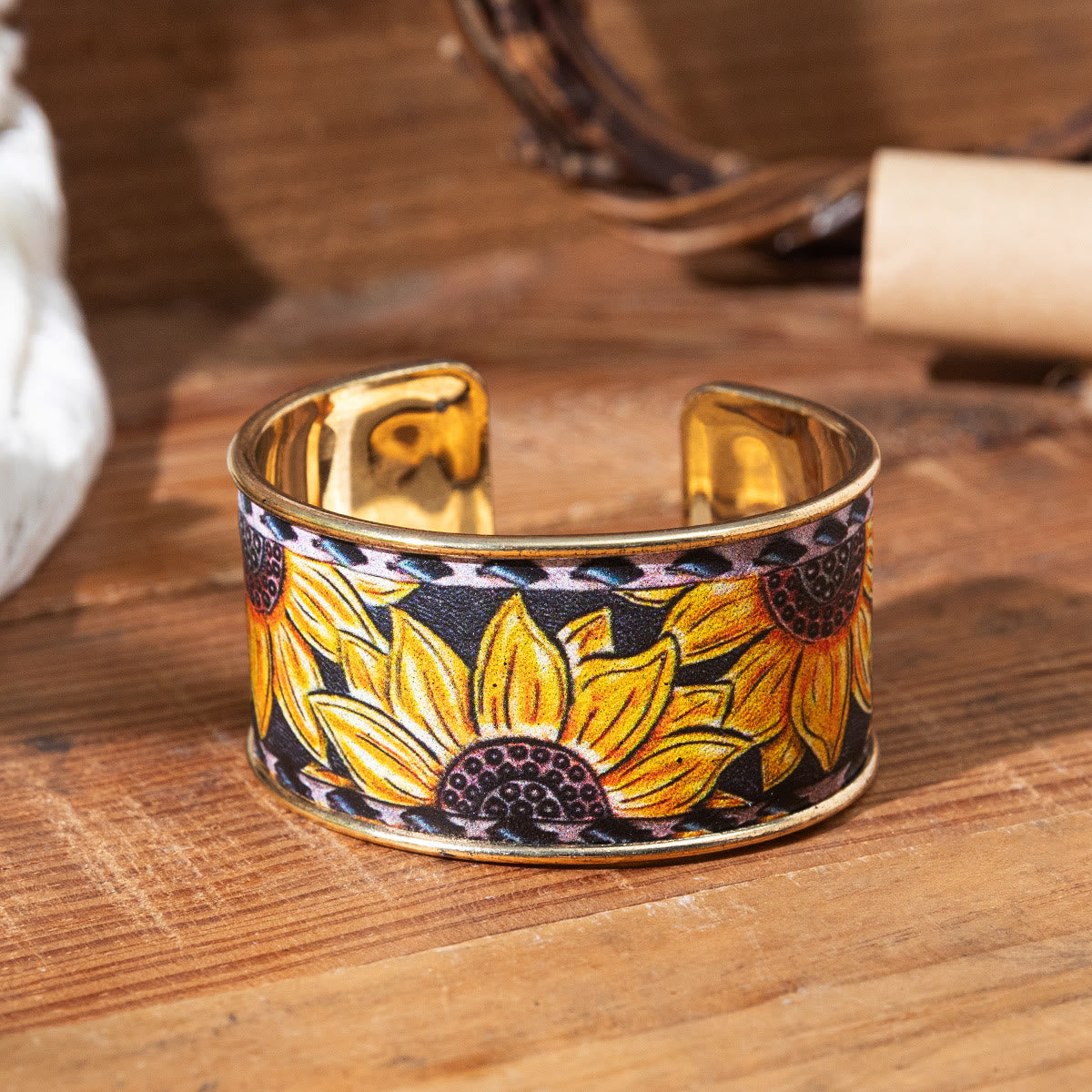 - Genießen Sie den strahlenden Charme eines Sommergartens mit unserem Vintage Colorful Sunflower Flower Opening Bracelet.