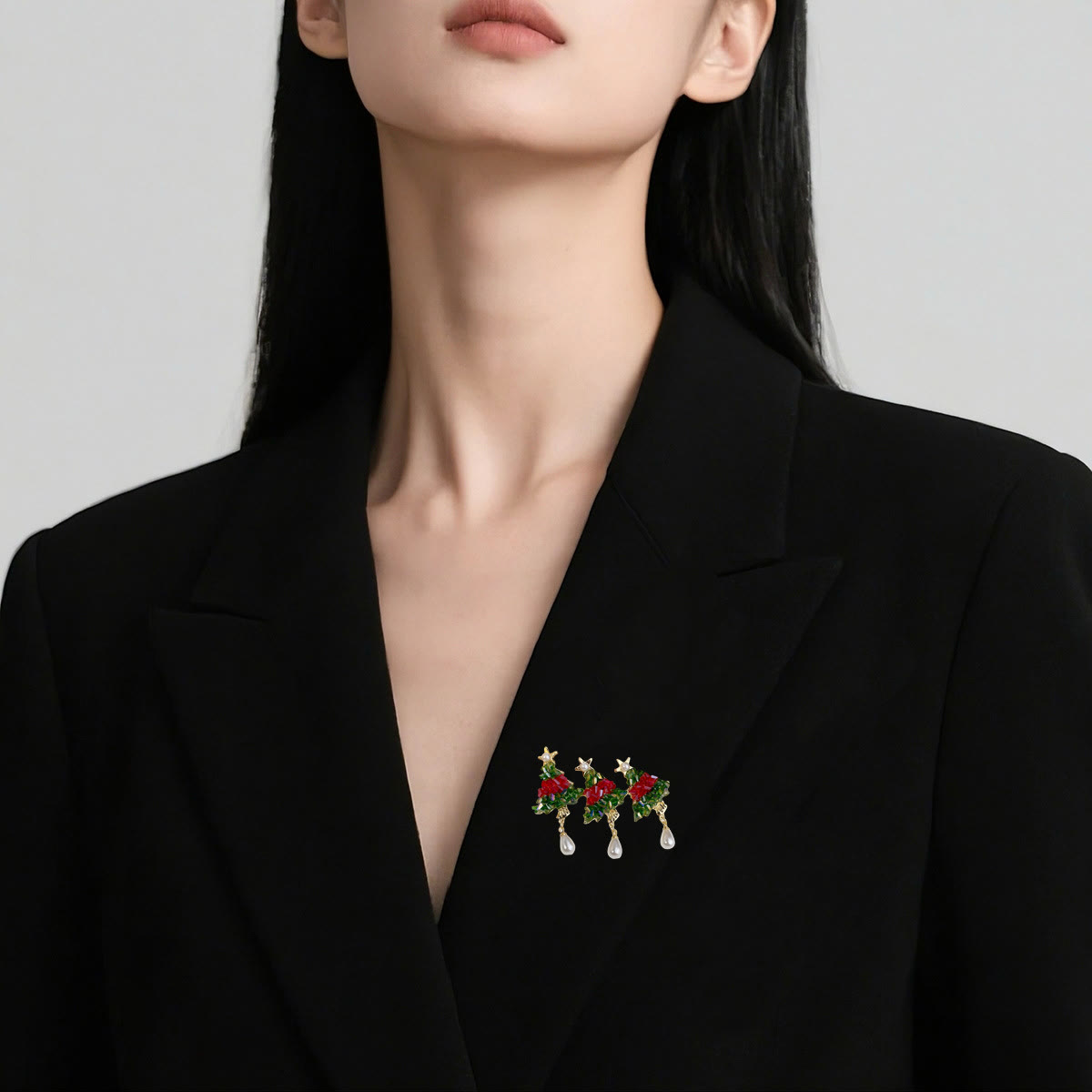 Das Design mit dem perlenbesetzten Weihnachtsbaum versprüht festlichen Charme und harmoniert perfekt mit verschiedenen festlichen Outfits – ob lässiger Pullover, Partykleid oder eleganter Mantel. Es verleiht Ihrem Look eine verspielte und lebendige Note, während der zarte Perlenanhänger Ihrem Festtags-Ensemble eine subtile Eleganz verleiht.