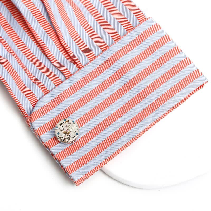 Diese exquisiten Manschettenknöpfe präsentieren das faszinierende Design eines mechanischen Uhrwerks, umhüllt von glänzendem Silberton. Jedes winzige Zahnrad und jede Komponente ist sorgfältig gefertigt und offenbart die komplexe Kunst der Uhrmacherei.