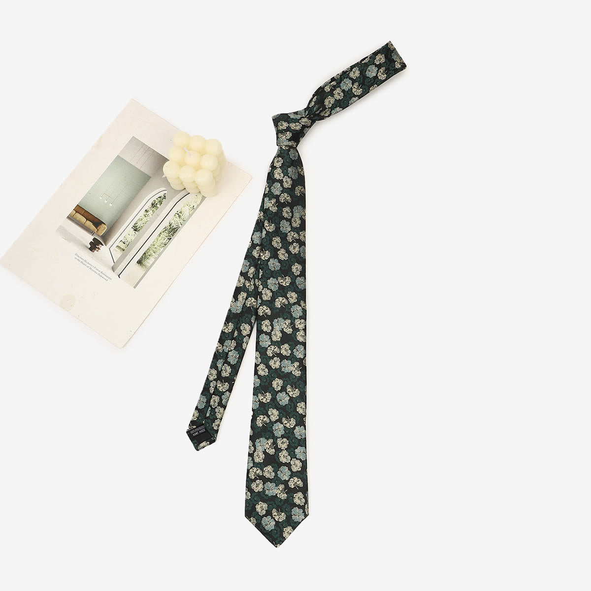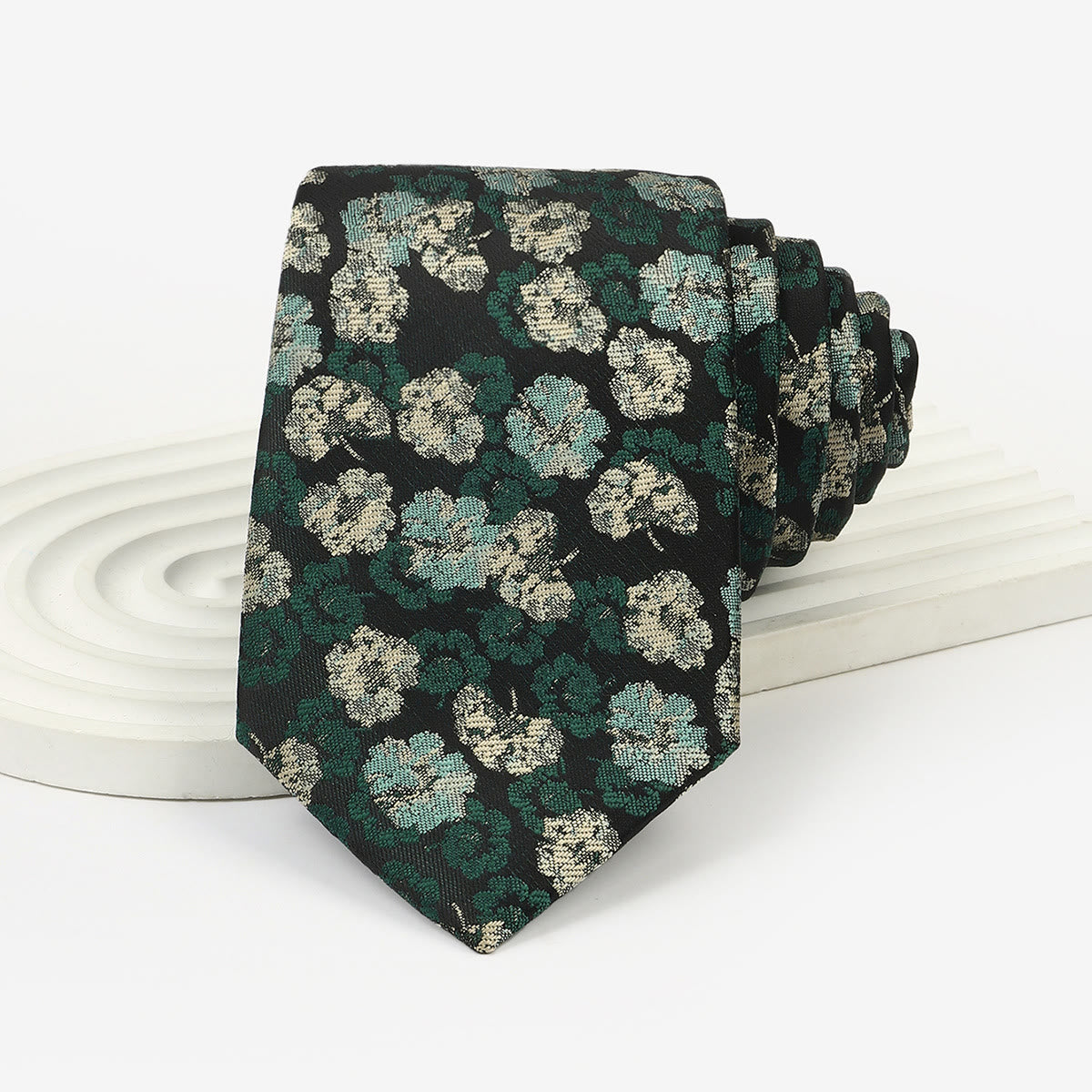 - Dieses charmante Herrenkrawatten-Set besteht aus hochwertigem, strukturiertem Stoff mit dunkelgrünen Grundtönen und verspielten Mustern.