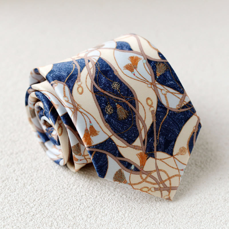 - Das Design ist lebendig und dennoch stilvoll, wobei die formalen Attribute der Krawatte erhalten bleiben und gleichzeitig die Ernsthaftigkeit durch verspielte Muster abgemildert wird;