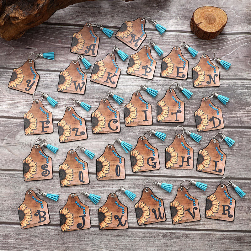Western-Stil Sonnenblumen & Buchstaben Quaste Leder Schlüsselanhänger