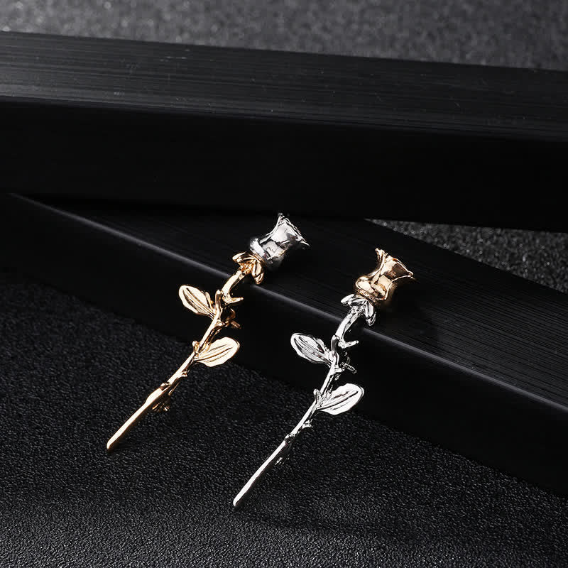- Diese Brosche zeichnet sich durch eine zarte Rose aus, die einen Sterling-Silber-Stiel krönt.