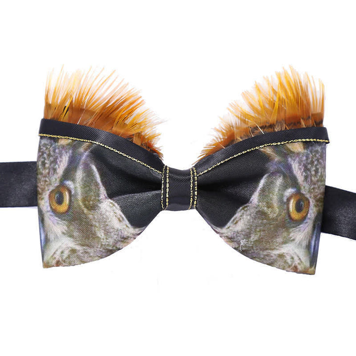 - Die Modefliege ist mit einem lustigen Eulenkopfmuster bedruckt.