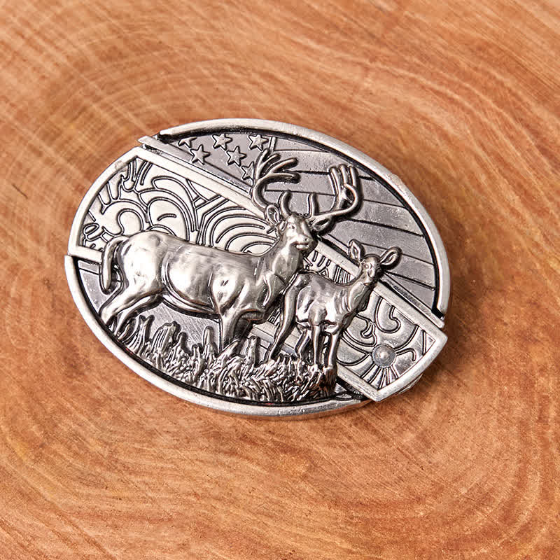 - Es gibt Hirsche mit der amerikanischen Flagge als Hintergrund.