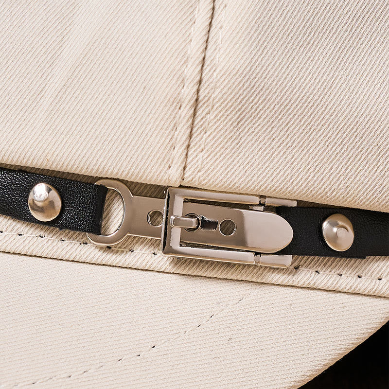 • Diese Baskenmütze ist aus weichem und griffigem Stoff gefertigt und hat einen sanften, vielseitigen Beigeton. Der Korpus der Mütze ist mit diamantbesetzten, galoppierenden Metallabzeichen verziert, die ihr ein luxuriöses und exquisites Aussehen verleihen. Der schwarze Lederzierstreifen am Rand, kombiniert mit Details aus Metallschnallen, unterstreicht den robusten Retro-Stil zusätzlich;